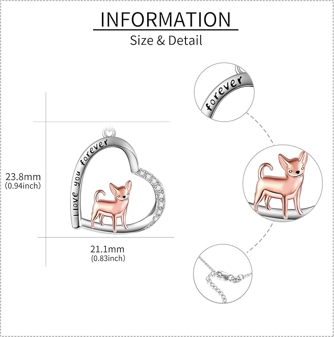 - 【Material Type】This chihuahua necklace is made of 925 Sterling Silver which is Nickel-free, Lead-free, Cadmium-free, and Hypoallergenic. Long-Time Wearing Keeps You a Good Health.