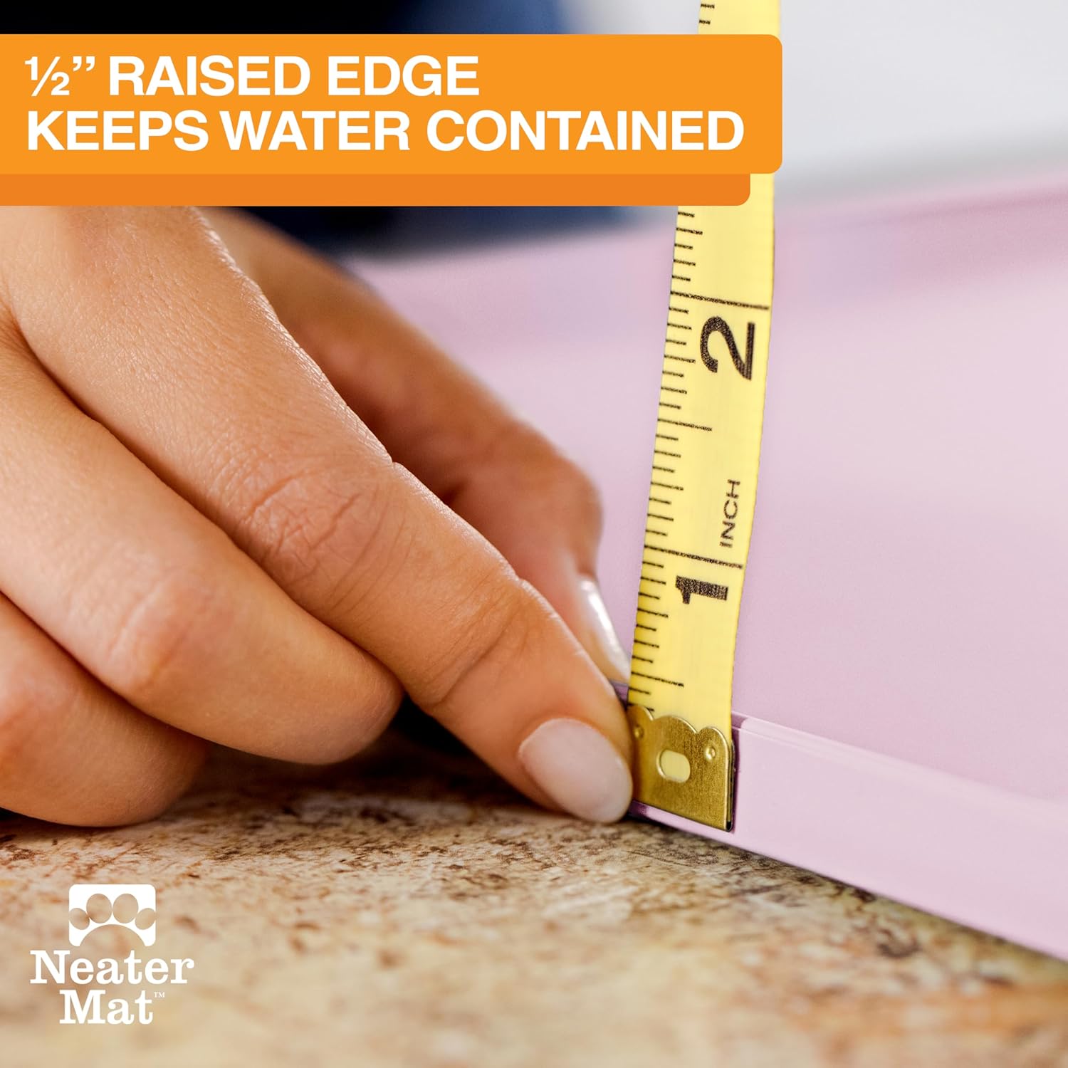 Neater Pet Brands Neater Mat Pet Mats for Food and Water, Cat & Dog Bowl Mat Waterproof Silicone, Feeding Tray, Dog Food Mats for Floors, Placemat w/Raised Edge for Under Bowls, 32" x 24", Light Pink