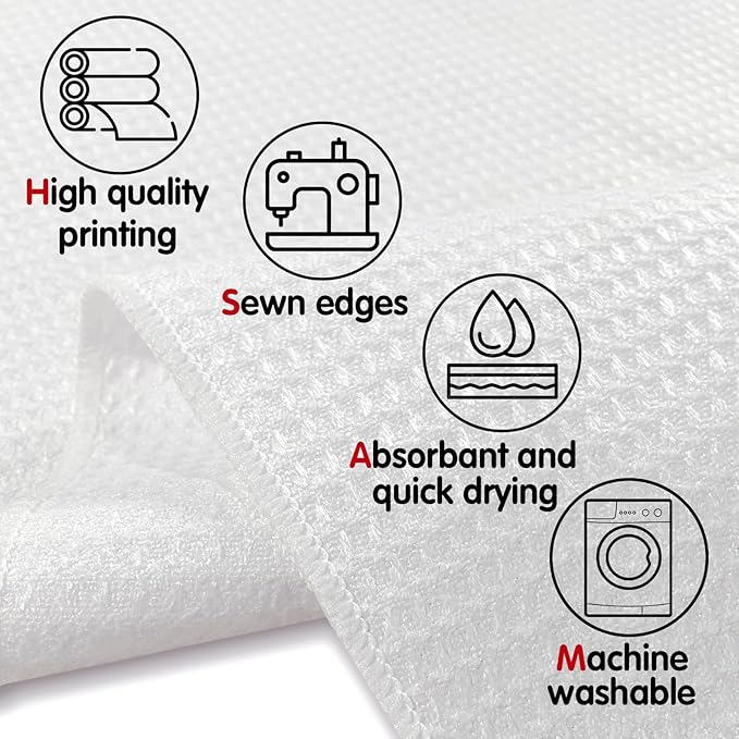 - VERY HIGH-QUALITY:Our kitchen towels are made of high quality microfiber waffle weave that is absorbent, quick dry, lint free and wrinkle-free,clear and bright printing.Great for wiping up spills or drying dishes, plates, glasses, silverware, and spatulas.