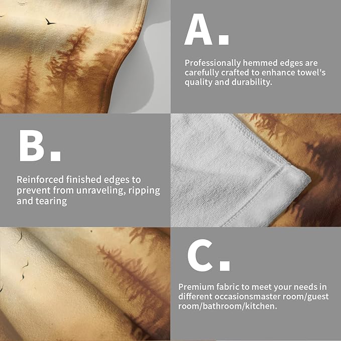 - 【Perfect Gift】This foggy forest hand towel makes a great addition to any space. It also a perfect gift for your family and friends. Great hostess gifts, housewarming gifts, or birthday gifts!
