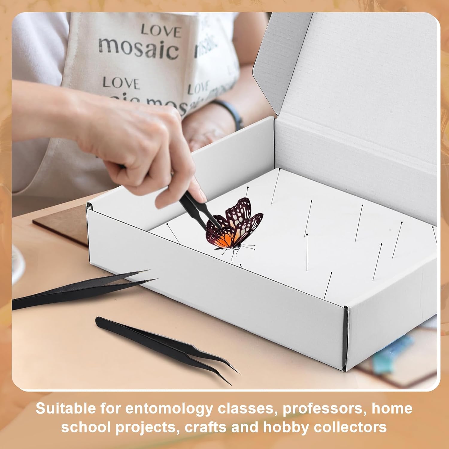 - Comprehensive Insect Specimen Kit: the insect pinning kit is proficiently designed to cater to the needs of beginners, aiding in seamless insect specimen creation; The kit includes 2 insect collection box, 2 EVA foam insect pinning boards, 1 set of 100 insect pins, and 3 types of tweezers; Every component in the kit helps to simplify the process, providing substantial support and enhancing the insect pinning experience; Note: specimens are not included