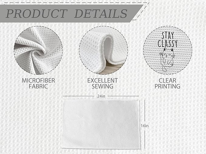 Funny Kitchen Towels, Cute Kitchen Dish Towel, Stay Classy, Dish Towels Gifts for Cat Lovers, Hand Towels for Bathroom, 16 x 24 inches