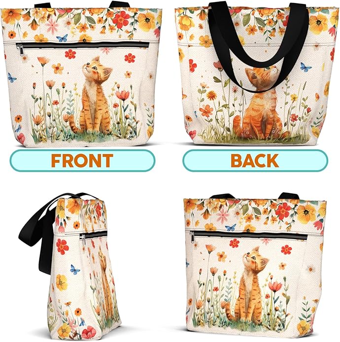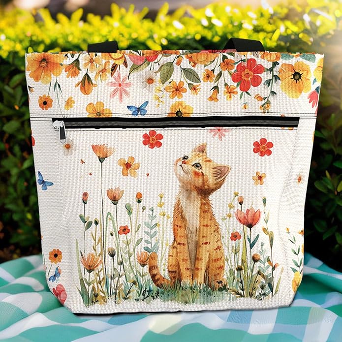 Waterproof Tote Bag with Pockets and Zipper for Work. Shoulder Bag for Women. Gift for Cat Lover Cat Owner.