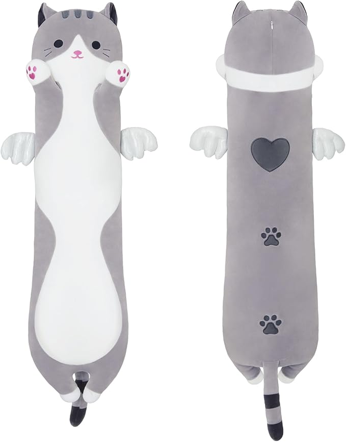 Long Plush Toy Cat Pillow Cute Plush Cat Toy Doll Stuffed Animal Cat Hugging Pillow for Sleeping Gift for Kids and Girls(Gray,50cm/19.6in)