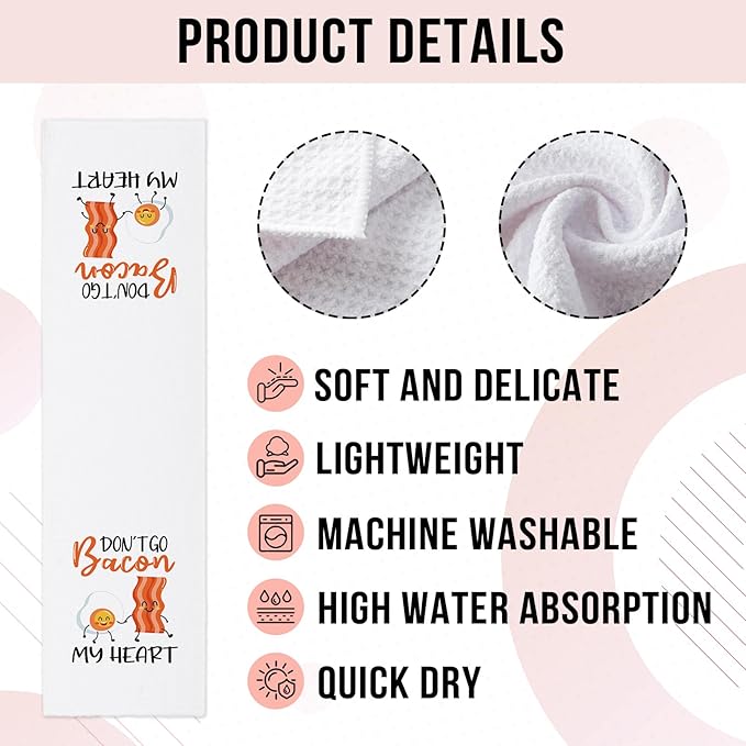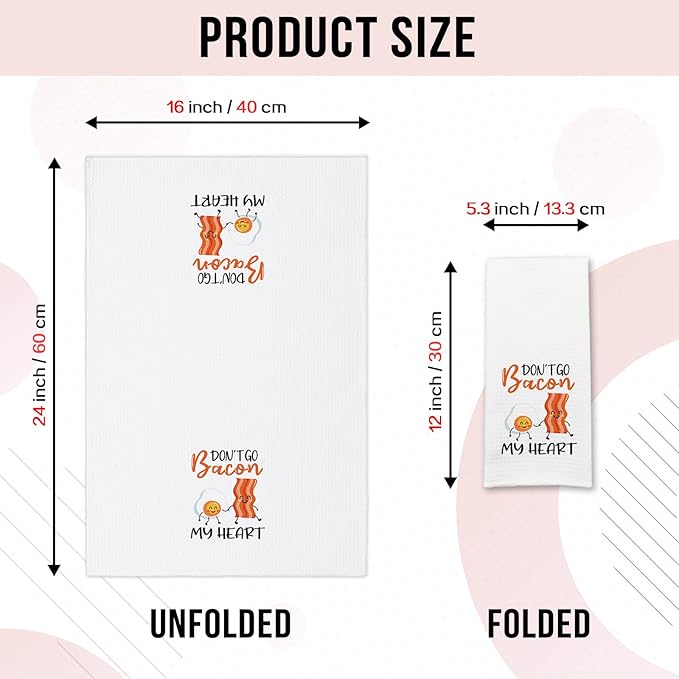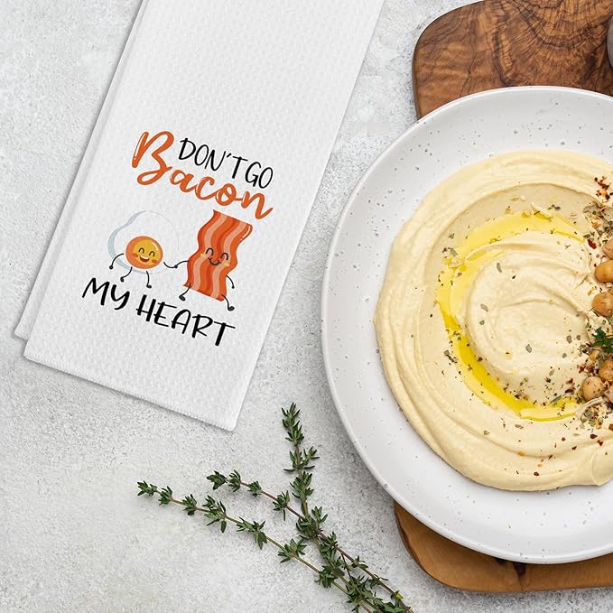 - Unique Design: Our funny kitchen towel with saying "Don't Go Bacon My Heart". The simple yet cute text patterns can bright up your kitchen and surprise your family and friends. It's a perfect kitchen gift for your favourite chef.