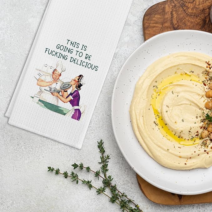 - Unique Design: Our funny kitchen towel with saying "This is Going to Be Fxxking Delicious". The simple yet cute text patterns can bright up your kitchen and surprise your family and friends. It's a perfect kitchen gift for your favourite chef.