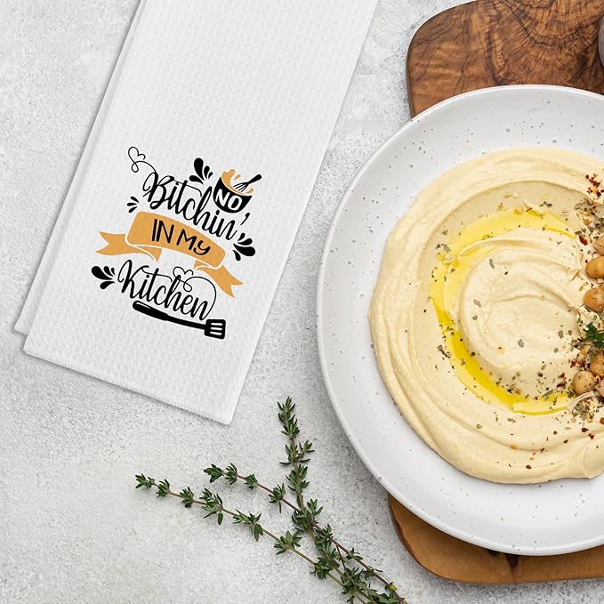 - Unique Design: Our funny kitchen towel with saying "No Bixxhin' in My Kitchen". The simple yet cute text patterns can bright up your kitchen and surprise your family and friends. It's a perfect kitchen gift for your favourite chef.