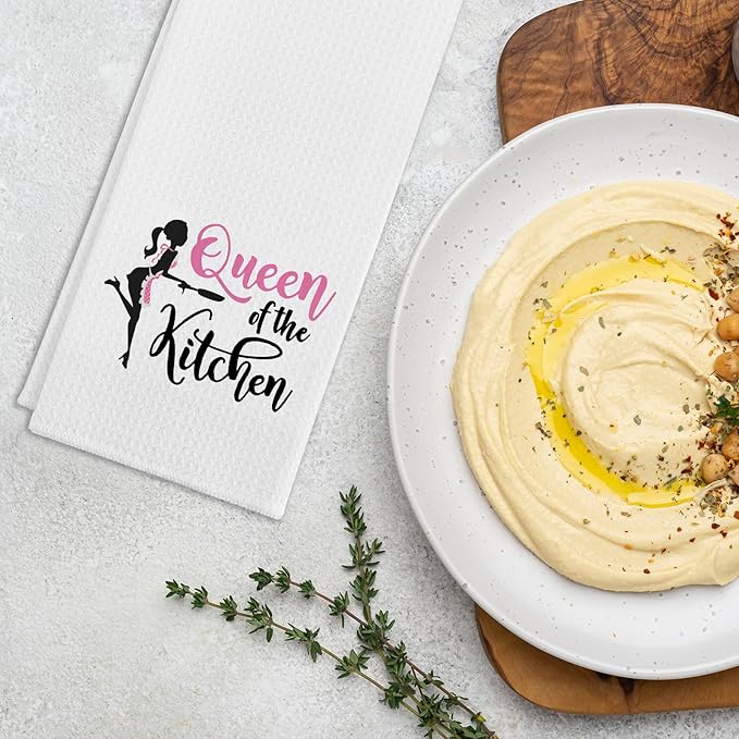 - Unique Design: Our funny kitchen towel with saying "Queen of The Kitchen". The simple yet cute text patterns can bright up your kitchen and surprise your family and friends. It's a perfect kitchen gift for your favourite chef.