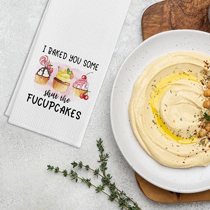 Funny Baking Kitchen Towel - I Baked You Some Shut The Fucupcakes - Adult Humor Soft Tea Towel for Kitchen Decor - Cupcake Gifts for Women, Housewife, Sister, Friend