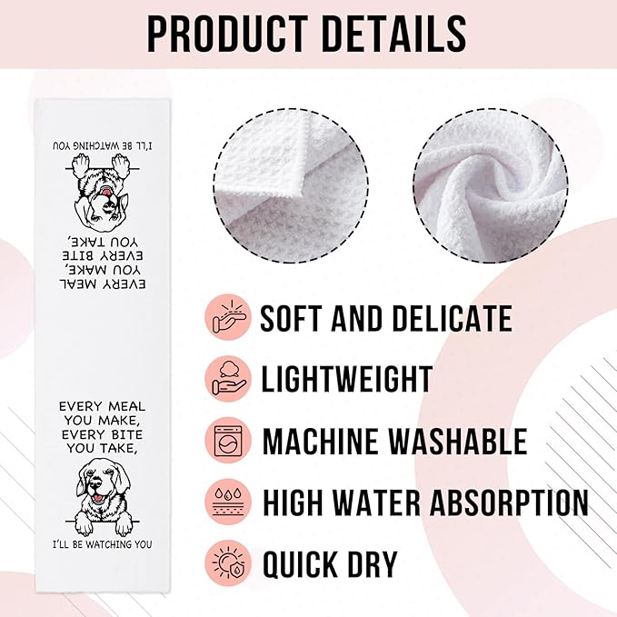 - Unique Design: Our funny kitchen towel with saying "Every Meal You Make, Every Bite You Take, I'll Be Watching You". The simple yet cute text patterns can bright up your kitchen and surprise your family and friends. It's a perfect kitchen gift for your favourite chef.