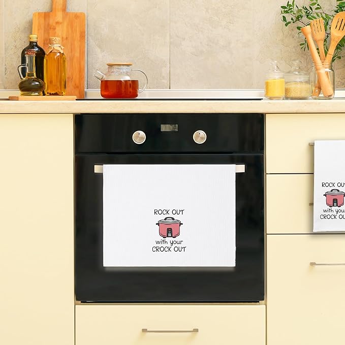 - Unique Design: Our funny kitchen towel with saying "Rock Out with You Crock Out". The simple yet cute text patterns can bright up your kitchen and surprise your family and friends. It's a perfect kitchen gift for your favourite chef.