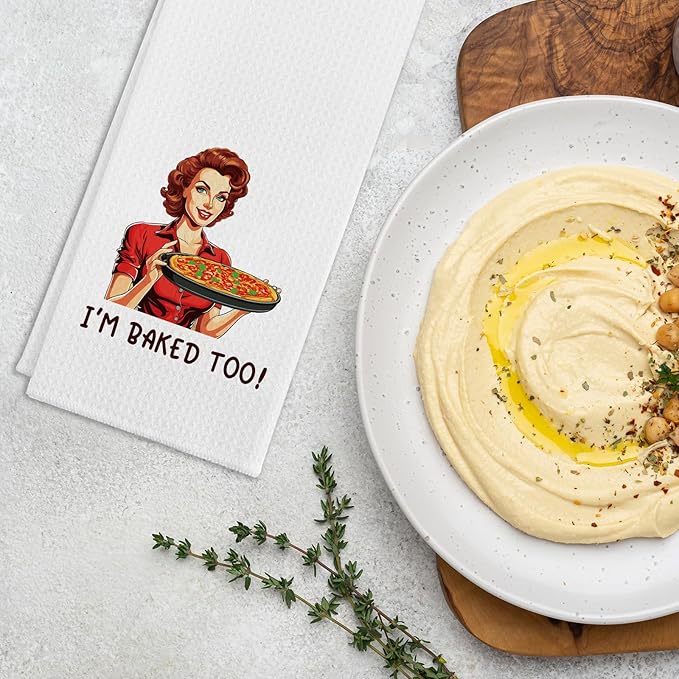 Funny Kitchen Towels I'm Baked Too Dish Towels Retro Sassy Housewife Towels for Kitchen Decor Sweet Housewarming Gifts BBQ Baking Cooking Towels Gifts for Women Hostess Sister Chef Friend