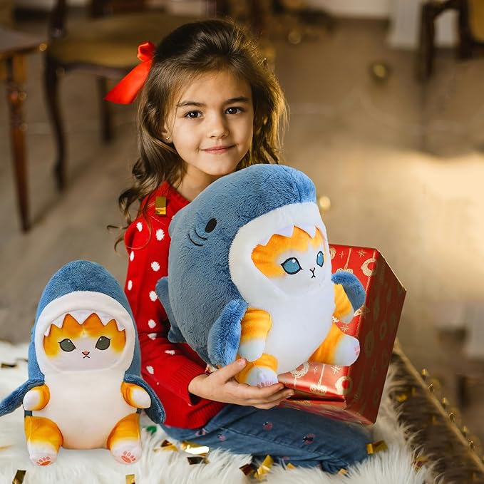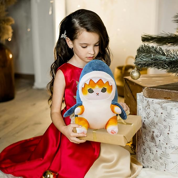 - IDEAL FOR ALL AGES: Whether it's for a toddler's bedtime stories or a tween's after-school relaxation, this Shark Cat Plush Toy is the perfect companion for kids of all ages. Its cute appearance and cuddly feel make it a hit among cat and shark lovers alike. Make a splash at your next gift-giving occasion with this shark cat plush toy. Whether you're buying for a cat lover, a shark enthusiast.