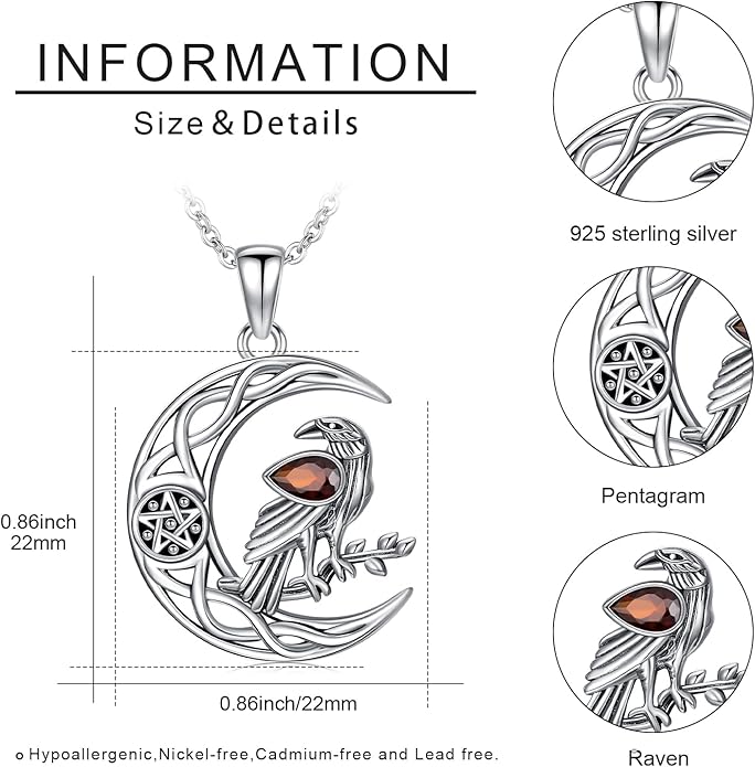 - 【Crow Necklace Material】Witch necklace made of 925 sterling silver, nickel free, hypoallergenic, cadmium free, lead free, and this pagan jewelry is great choice for individuals with sensitive skin.