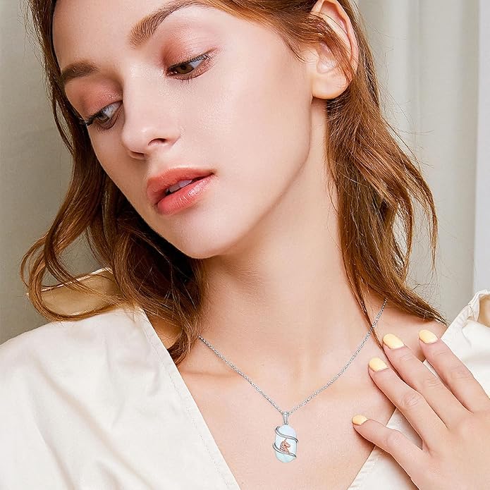 Opal Mama Bear/Panda/Cat/Koala/Sloth/Cardinal/Unicorn Necklace 925 Sterling Silver Opal Animal Pendant Jewelry Birthday Gifts Women Her Mom