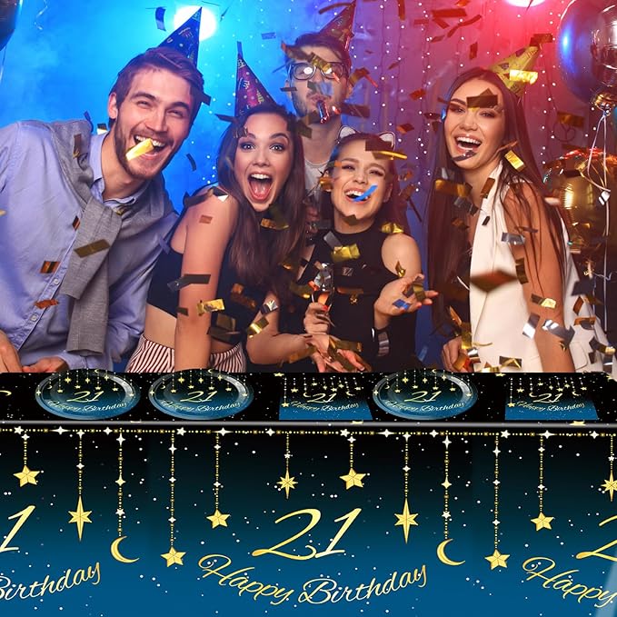 21th Birthday Party Decorations, 41Pcs Starry Sky Party Tableware Set Includes 20 Plate 20 Napkins and 1 Tablecloth, 21 Years Old Birthday Theme Party Supplies for Boys Girls Birthday Party Favors