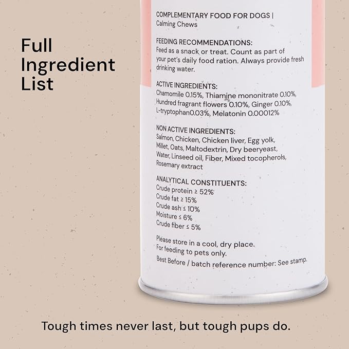 - Feel Confident Leaving Home: Storms, fireworks, car rides, vets & grooming appointments can be big fears for our pets. With our calming dog chews you can leave home with more confidence that you and your pup are prepared to face them head on