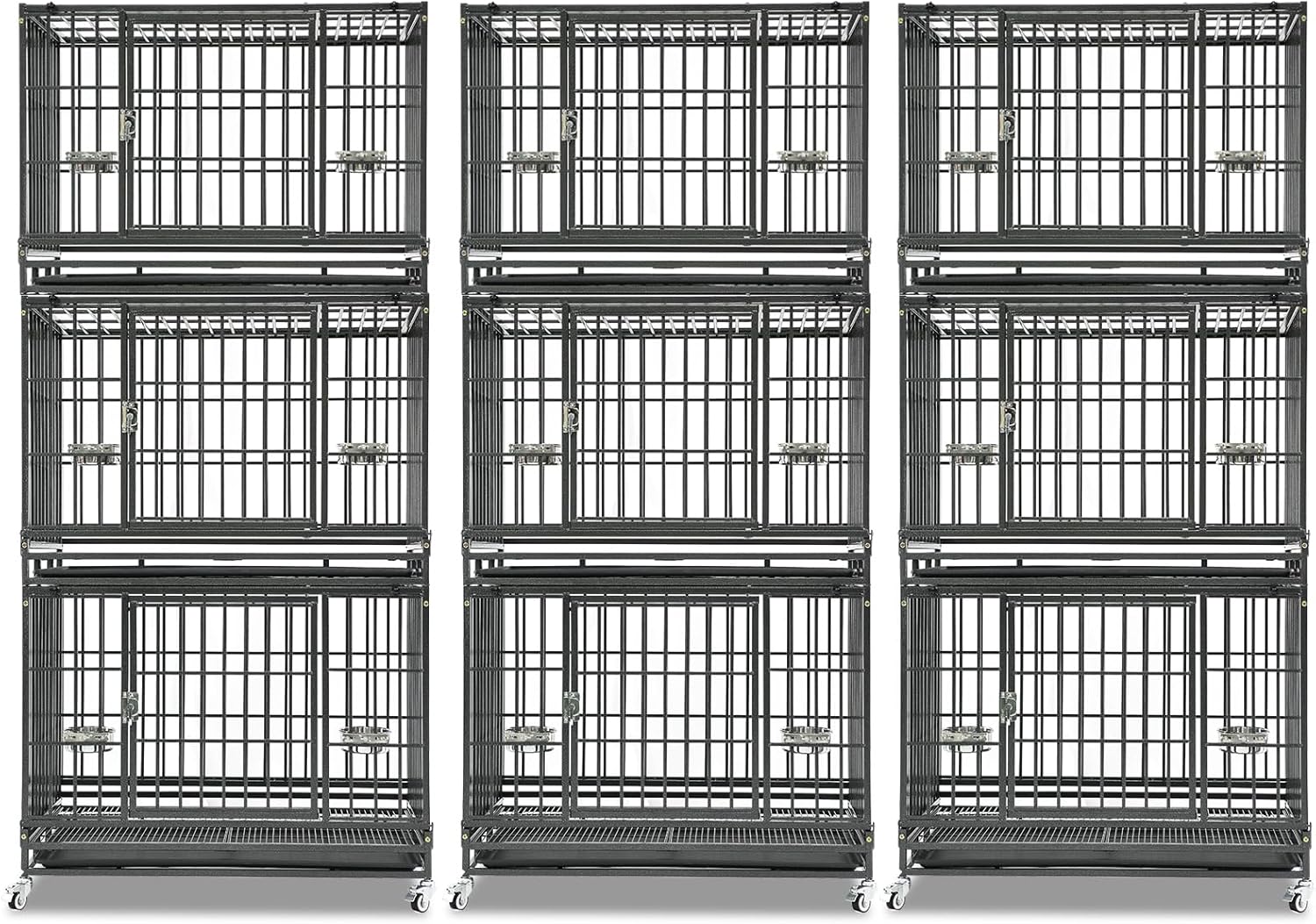 - Save Space, Keep Your Home Neat and Clean: Stacked up to THREE tiers high, making your home cleaner and more organized—A rare design in the market that ideal for multi-pet households, breeders, kennels, multi-pet households, pet hospitals, and groomers. The screw-fixed design ensures stability and safety when stacking, maximizing vertical space while maintaining comfort for your dogs