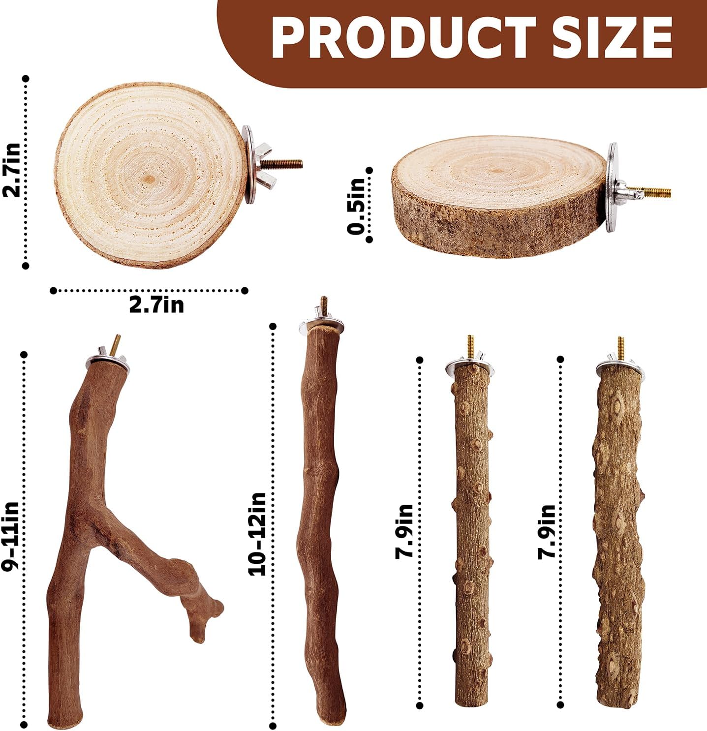 - [Different types of parrot perches]:- Create a natural habitat for your feathered friends with 3 grape stick paw grinding fork perches, 2 parakeet perches and 2 round platform.