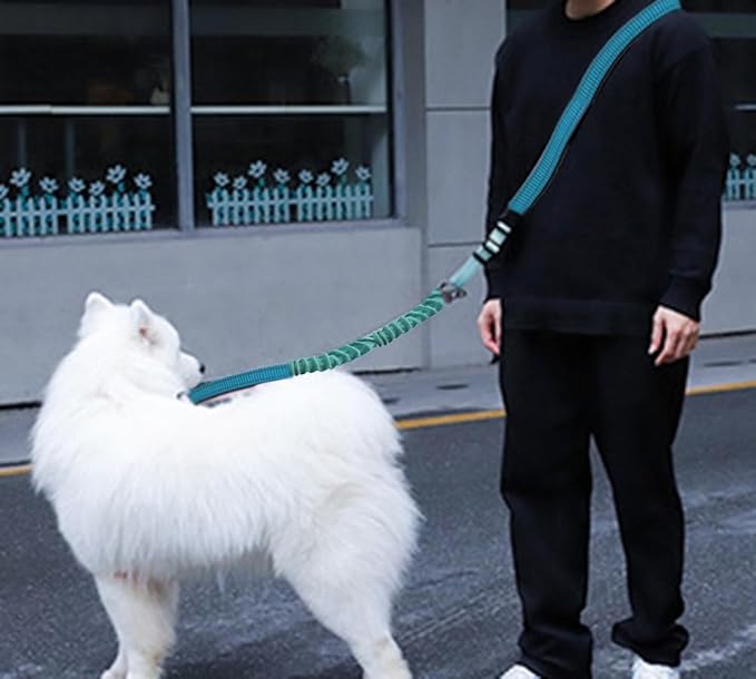 - Bungee Dog Leash: This heavy duty bungee dog leash is perfect for active dogs. Bungees design help to absorb shock from dogs, reduce back strain and the risk of getting hurt. Our waist leash is 57 inch and extends up to 90 inch, your dog can comfortably run in front of you. And the dog leashes for large dogs heavy duty with short handle, you can use it pull the dog back to safety fastly in case of emergency