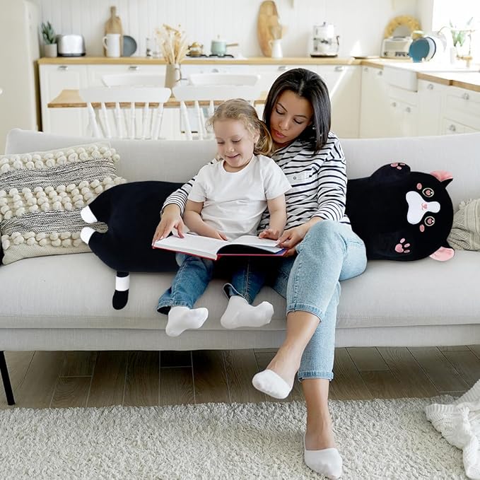 Long Plush Toy Cat Pillow Cute Plush Cat Toy Doll Stuffed Animal Cat Hugging Pillow for Sleeping Gift for Kids and Girls(Black&Pink,110cm/43.3in)
