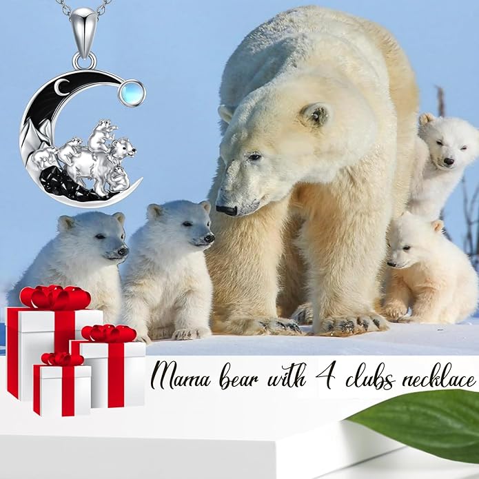 - Gift for Mom: Mother's Day gift for family. Mama Bear stands on the mountain which composed of 5A+ CZ, carrying cubs on her back, trying to touch the moon.The mama bear necklace expresses the mother's companionship and love for her 4 clubs