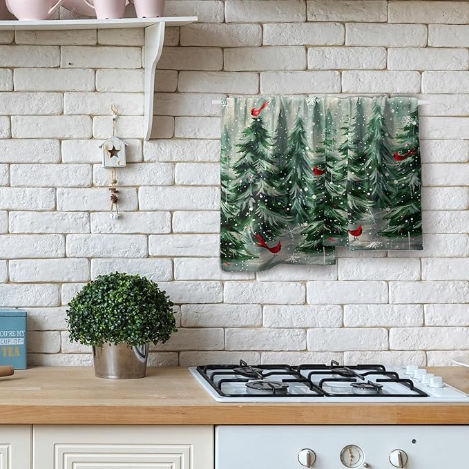 Winter Pine Tree Hand Towels Set of 2 Red Bird Decorative Bath Towel Soft Highly Absorbent Kitchen Tea Dish Towels for Bathroom Spa Gym