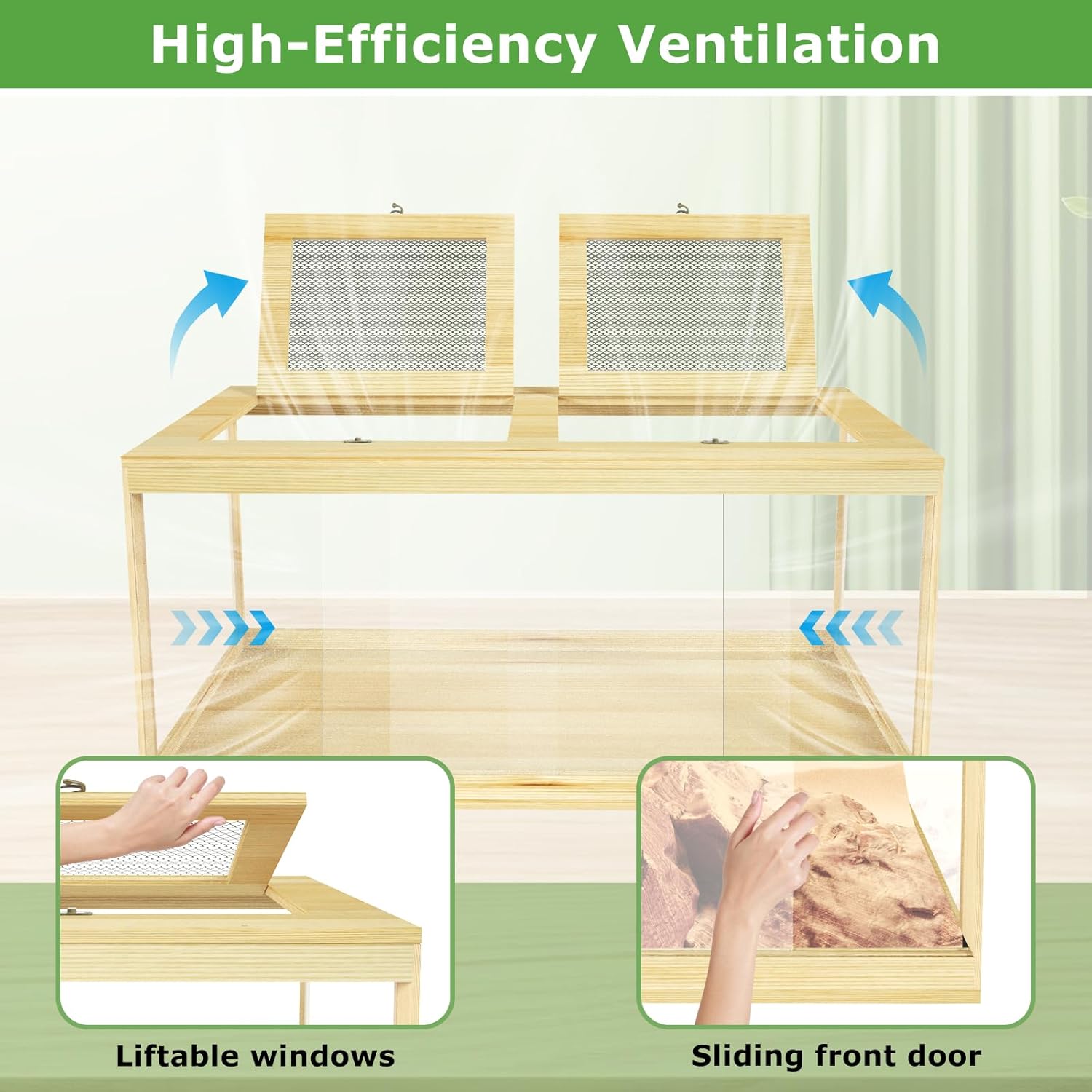 - Pet-friendly natural habitat: Nalwort reptile tank is constructed with solid wood and acrylic materials, featuring the natural wood grain and texture of pine. This design truly simulates the reptiles' natural habitat, providing a comfortable living space. (Please note: the reptile terrarium tank is NOT suitable for water storage)