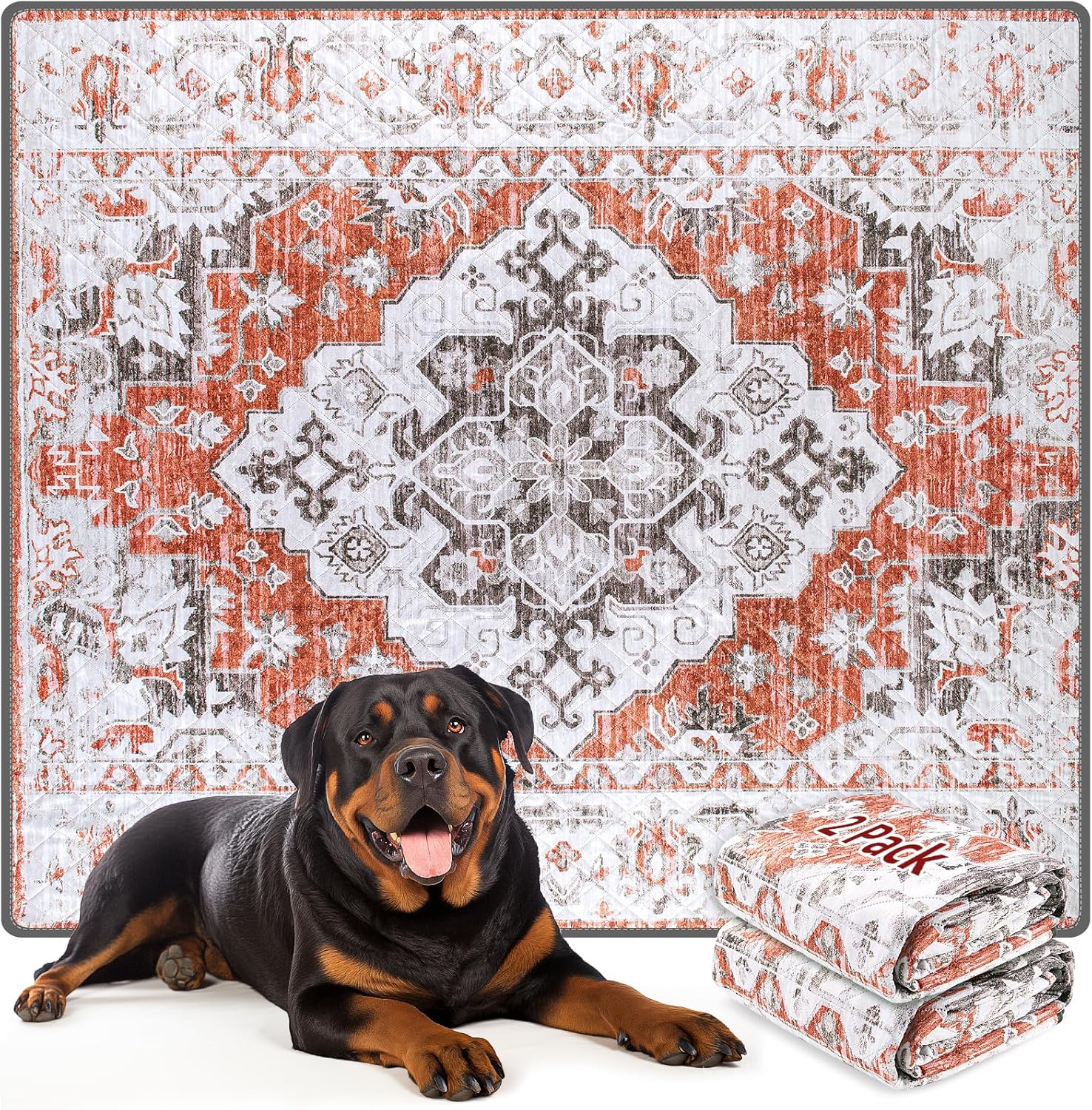 LOOBANI Reusable Pee Pads for Dogs, 1 Pack Super Absorbent Washable Puppy Pee Pads, Waterproof Non-Slip Whelping Pad for Floor Playpen Crate Couch-65 x48 (Red-Orange)