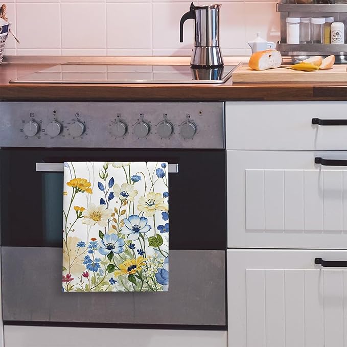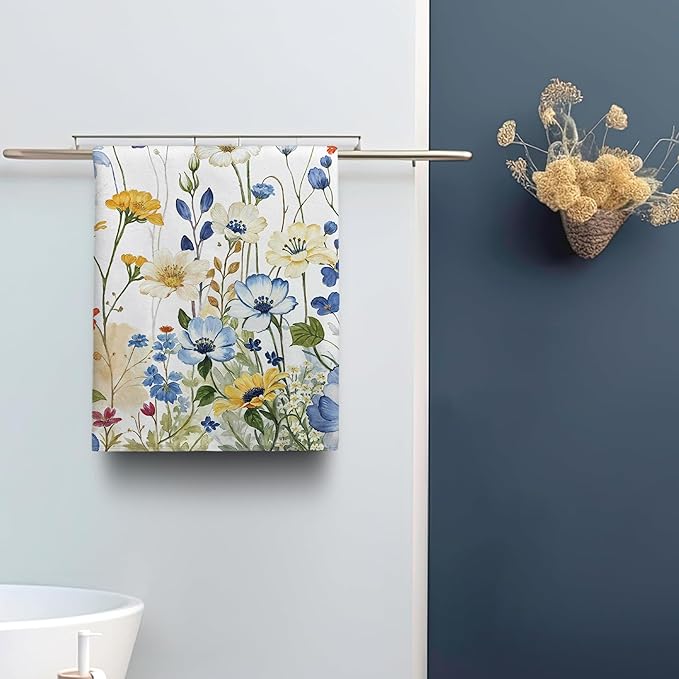 kampdream Faxdong Floral Hand Towel Set of 2, Watercolor Wildflower Botanical Plant Leaves Design Soft Absorbent Towels for Home Hotel Gym Spa Bathroom, Multi1 16×27 inch
