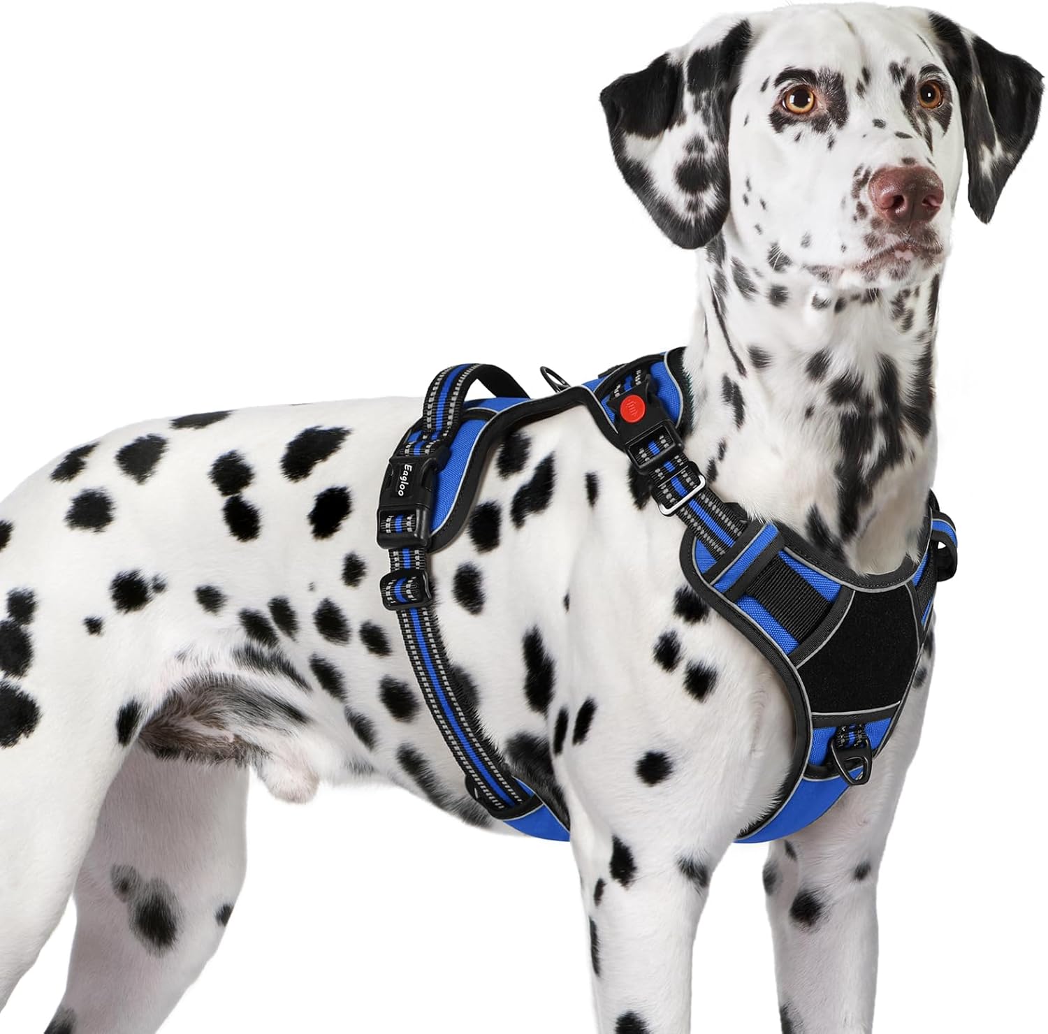 Eagloo Dog Harness for Large Dogs, Easy Wearing with 3 Buckles, Adjustable No Pull Pet Harness with 2 Rings for Walking, No Chock Reflective Soft Padded Vest with Control Handle, Blue & Black, XL