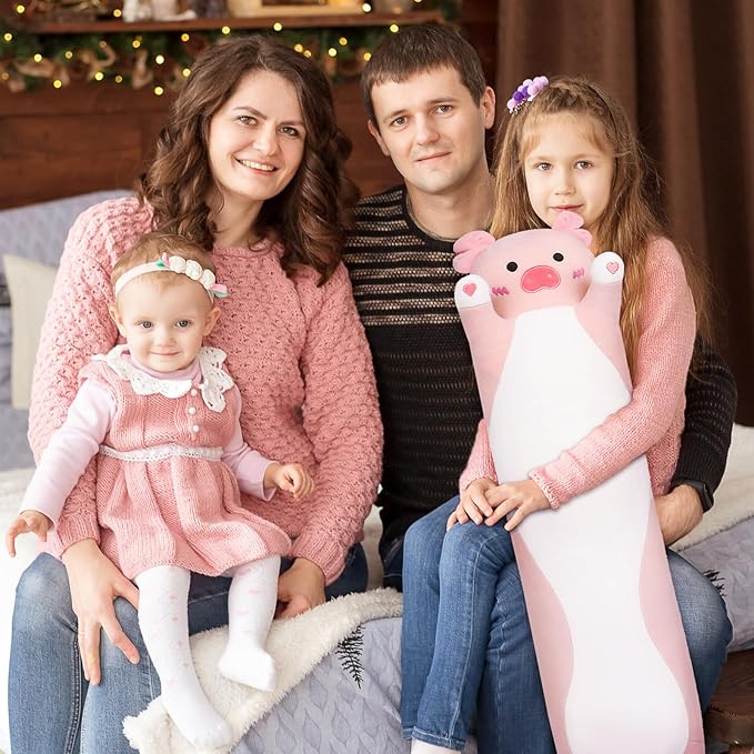 - 【Multi Functional Long Pig Plush Pillow】It can be a waist cushion or pillow on the sofa, a sleeping pillow or companion during room rest, or a temporary cushion for playing and resting. It is both full and elastic. Squeezing it can relieve stress and negative emotions in work and life, accompany you through lonely times, and add some fun and comfort. This will be the perfect gift for Christmas, Thanksgiving, Valentine's Day, Halloween, Mother's Day, Father's Day, and birthday holidays. Your friends, family, and loved ones will all love it very much.