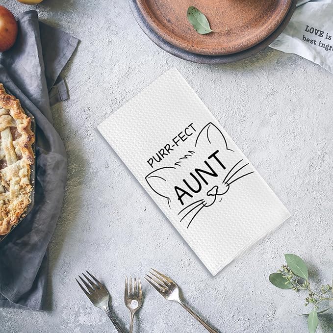 Funny Cat Kitchen Towels for Aunt, Purr-FECT Aunt Hand Towels, Waffle Weave for Kitchen & Bathroom, Cat Lovers' Gift, 16x24 Inch