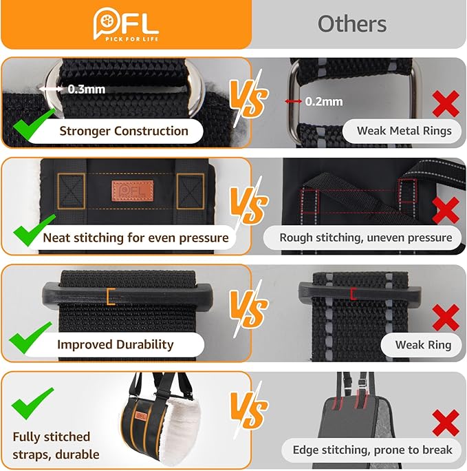 - Soft Durable : Inside contains synthetic fleece material,the dog mobility harness is very fluffy and comfortable for your dog to wear,won't chafe your pups underbelly. The belly sling carrier outer cove with oxford fabric, it is sturdy for large dog