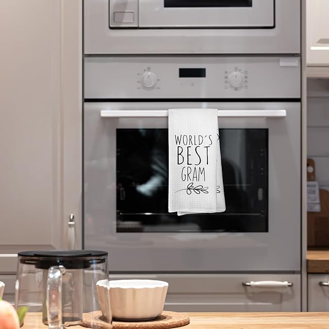 World's Best Gram Kitchen Towels, Gram Gifts for Grandmother Grandma, Gram Gifts from Grandson Granddaughter Kids, Gram Mother's Day Birthday Gifts Tea Towels Kitchen Hand Towels 16x24 Inch