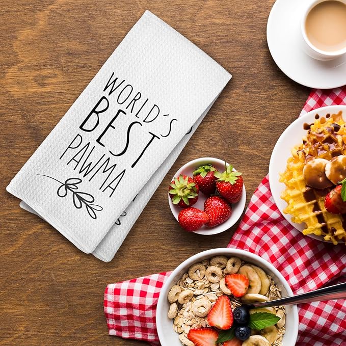 World's Best Pawma Kitchen Towels, Dog Pawma Gifts for Dog Dad Dog Owner Dog Lovers, Dog Grandma Gifts from Children, Pawma Mother's Day Birthday Gifts Tea Towels Kitchen Hand Towels 16x24 Inch