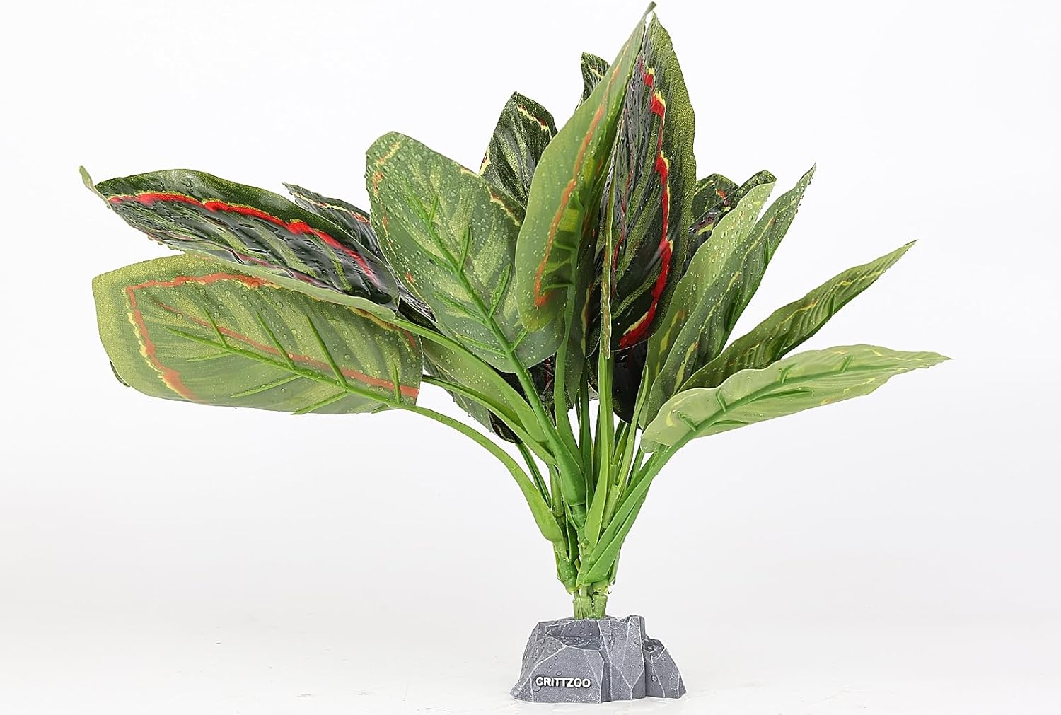 Reptile Terrarium Plants, Bearded Dragon Tank Decor Accessories For Ball Python Leopard Gecko Tree Frog Tarantula Lizard Corn Snake Tortoise Chameleon Crested Gecko - Fake Goeppertia Red Edge