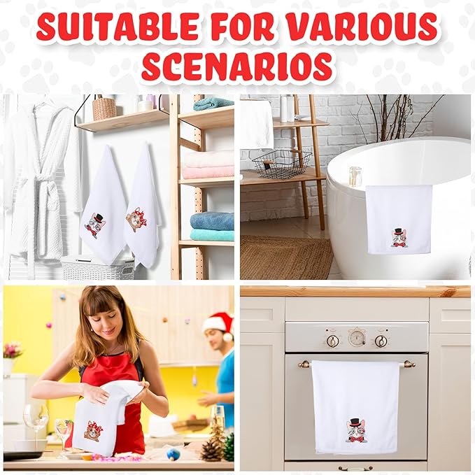- Cotton hand towels cats: these Christmas hand towels cat are made of cotton, adding a dose of coziness and absorbency; Whether you're drying dishes or washing your hands, these cat hand towels for kitchen or bathroom use brings holiday cheer with their cute embroidered cat designs