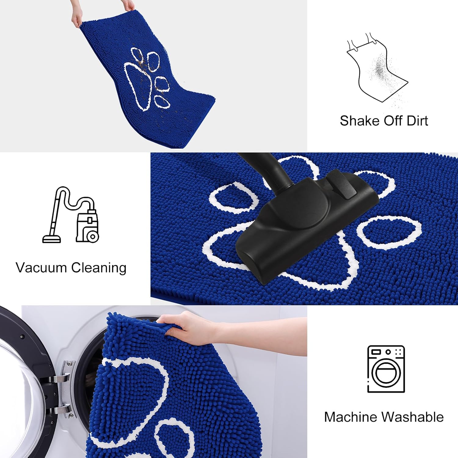 Smiry Dog Door Mat for Muddy Paws, Absorbent Dirt Trapper Non Slip Quick Dry Washable Chenille Mat for Mud Dogs, Entry Rug for Indoor and Outdoor (36x24 Inches, Royal Blue)