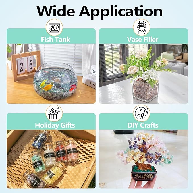 - Wide Application: These crystal chips are not only suitable for home decoration, but can also be given as a birthday or Christmas gift to family and friends. Perfect for decorating aquariums, succulent plants, vases and DIY handcraft projects