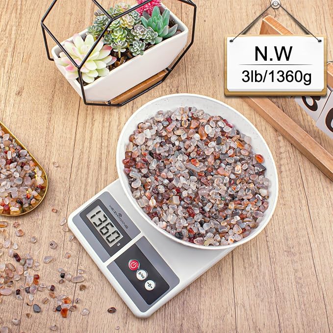 White Agate Crushed Stones Crystal Chips Bulk 3 Lb, Natural Tumbled Crushed Stones Decorative Pebbles Bulk for Vases Filler, Aquarium Gravel Rocks, Succulent Plants Decor