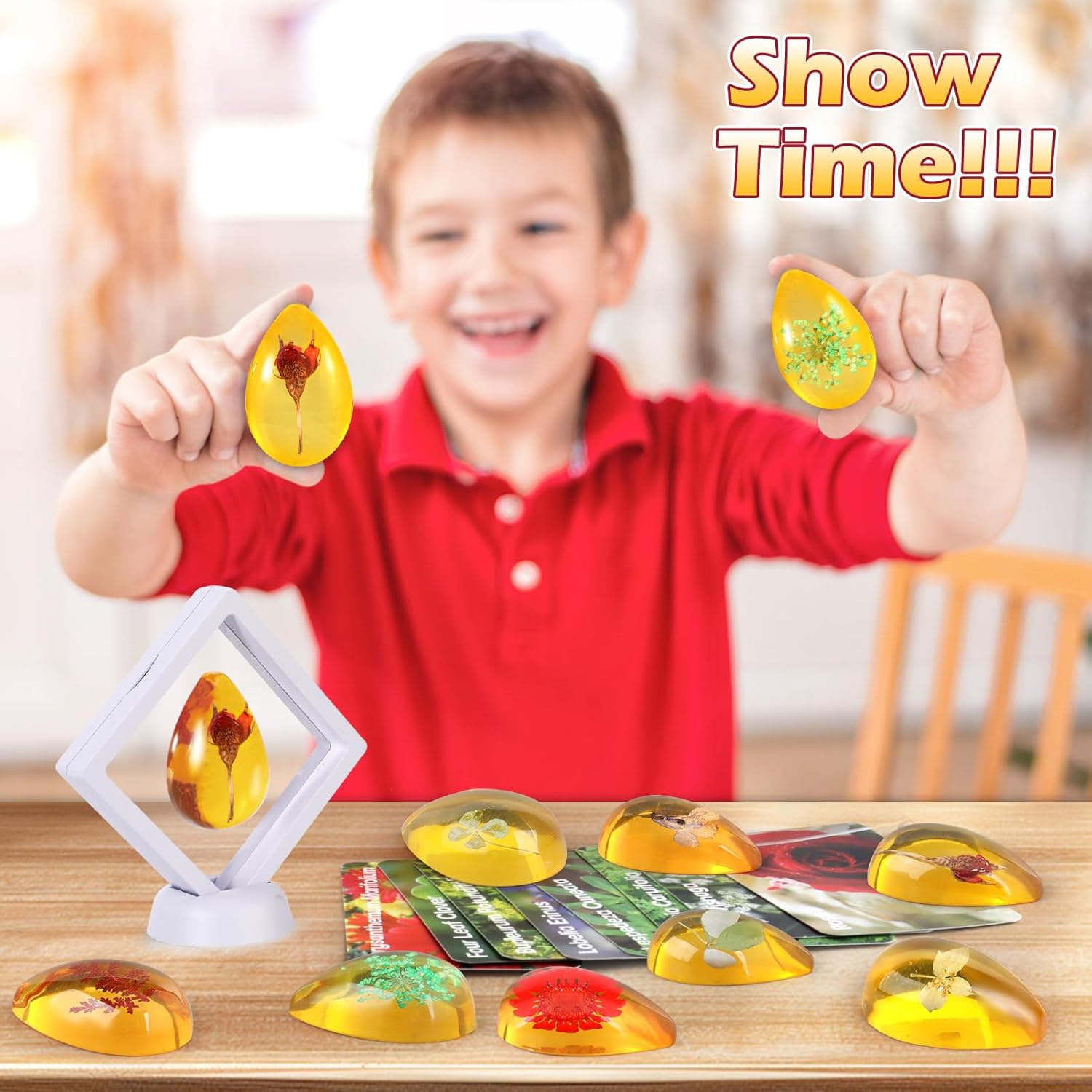 - 【 Learn and Play 】 Each amber is accompanied by an information card, turning this activity into an educational adventure. Children can match the ambers to the cards, learning about different flowers and gemstones. This interactive play promotes cognitive development and a love for the natural world.