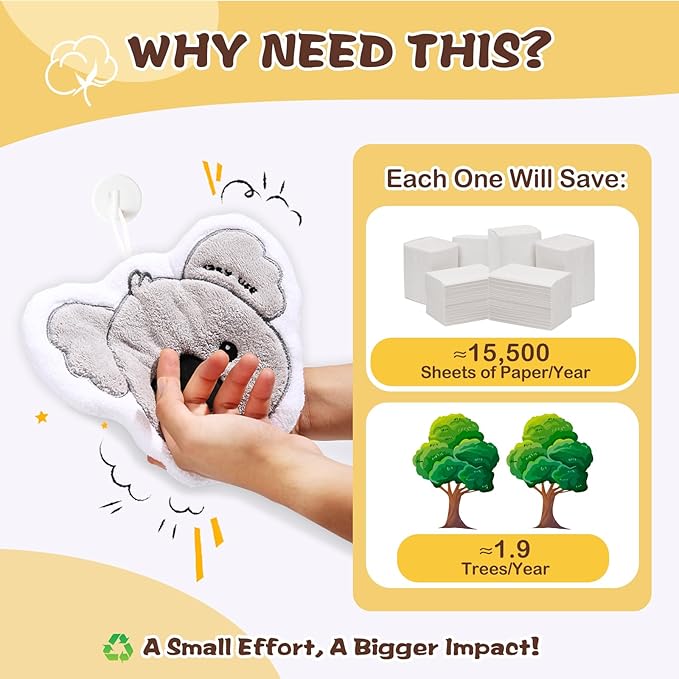 - [Reduce Paper Towel Waste]: Save up to 15,000 paper towels per person each year! Our hand towels only need washing once a week and last a long time. Made from durable coral fleece, they wonβt shed or fade, making hand drying easy and enjoyable for the whole family!