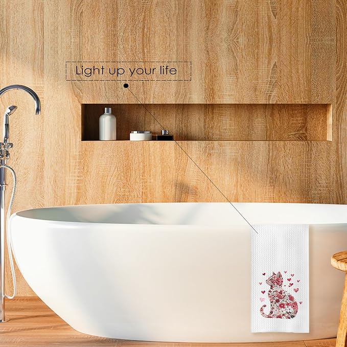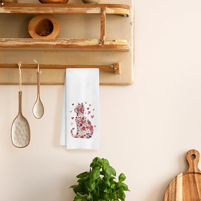 Floral Cat Kitchen Towels, Cat Lovers Gifts Hand Towels for Bathroom, Kitchen Bathroom Decor, 16x24 Inch