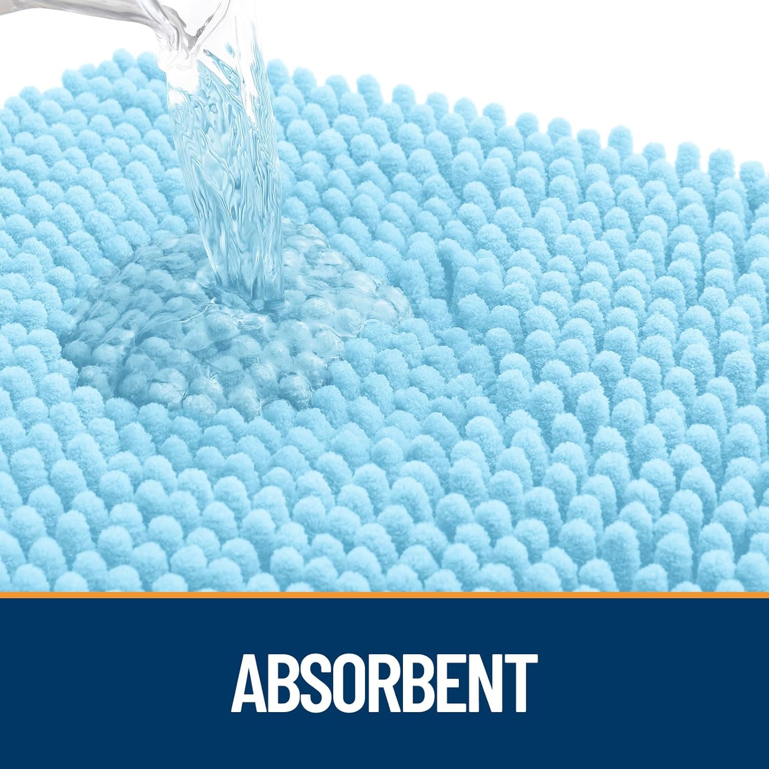OLANLY Dog Door Mat for Muddy Paws 47x20, Absorbs Moisture and Dirt, Absorbent Non-Slip Washable Doormat, Quick Dry Chenille Mud Mat for Dogs, Entry Indoor Entryway Carpet for Inside Floor, Blue