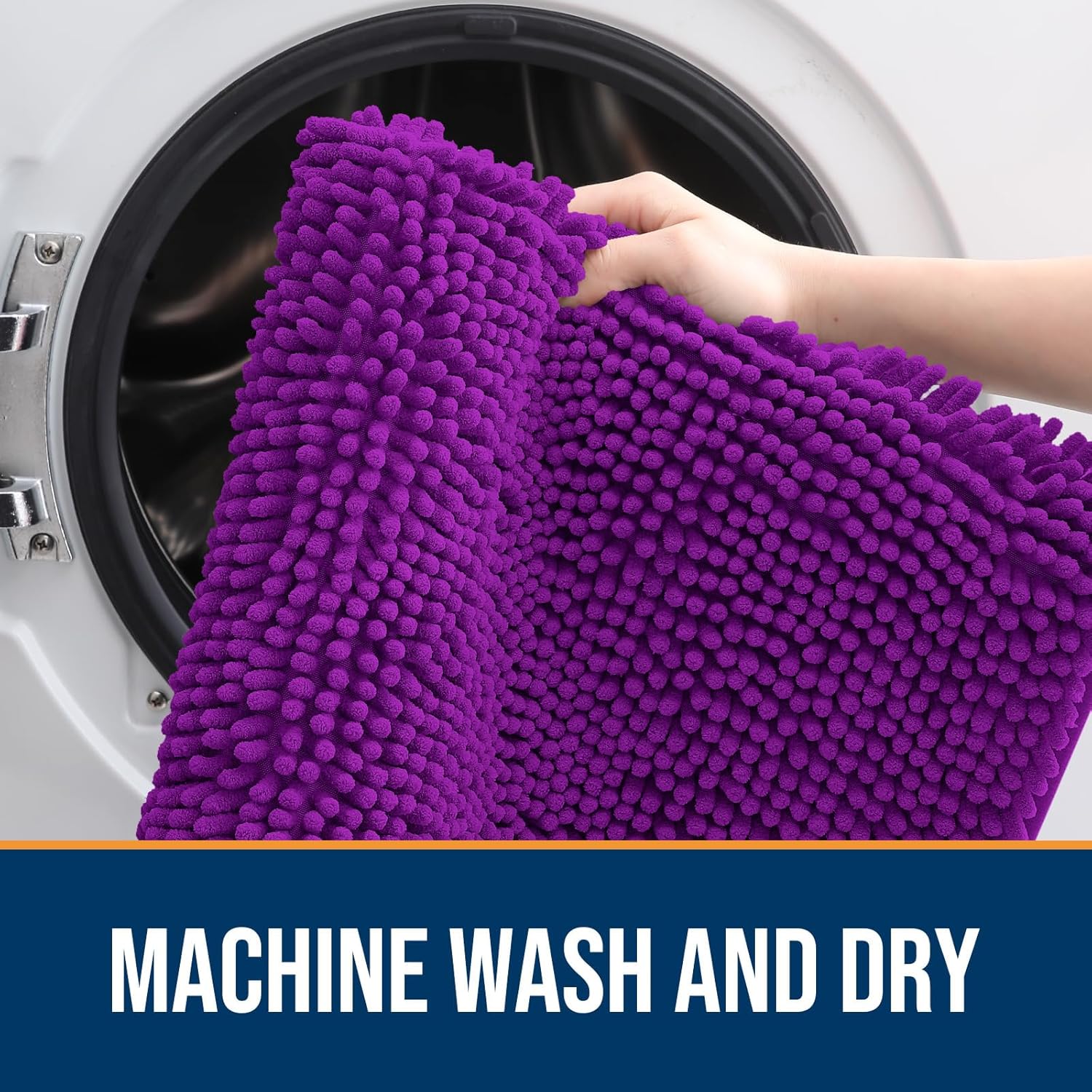 OLANLY Dog Door Mat for Muddy Paws 47x17, Absorbs Moisture and Dirt, Absorbent Non-Slip Washable Doormat, Quick Dry Chenille Mud Mat for Dogs, Entry Indoor Entryway Carpet for Inside Floor, Purple