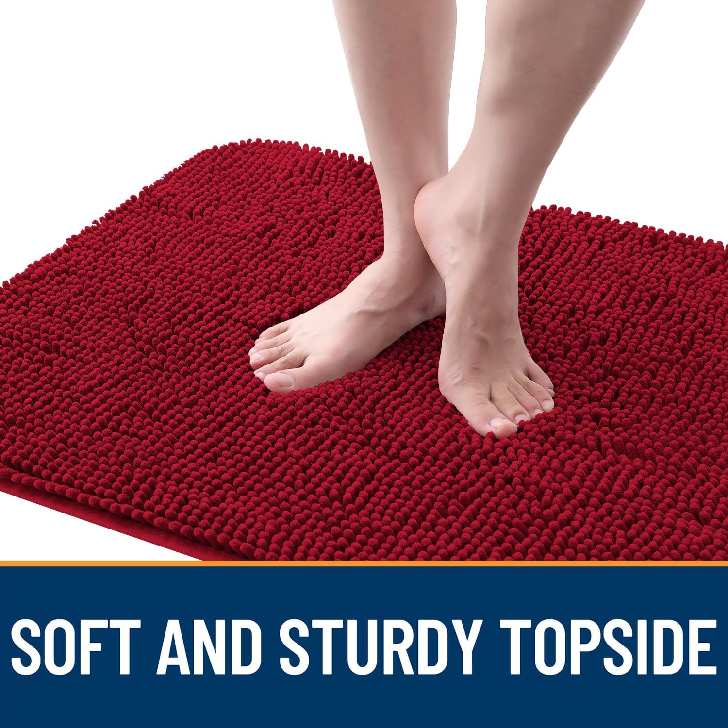 OLANLY Dog Door Mat for Muddy Paws 47x17, Absorbs Moisture and Dirt, Absorbent Non-Slip Washable Doormat, Quick Dry Chenille Mud Mat for Dogs, Entry Indoor Entryway Carpet for Inside Floor, Red