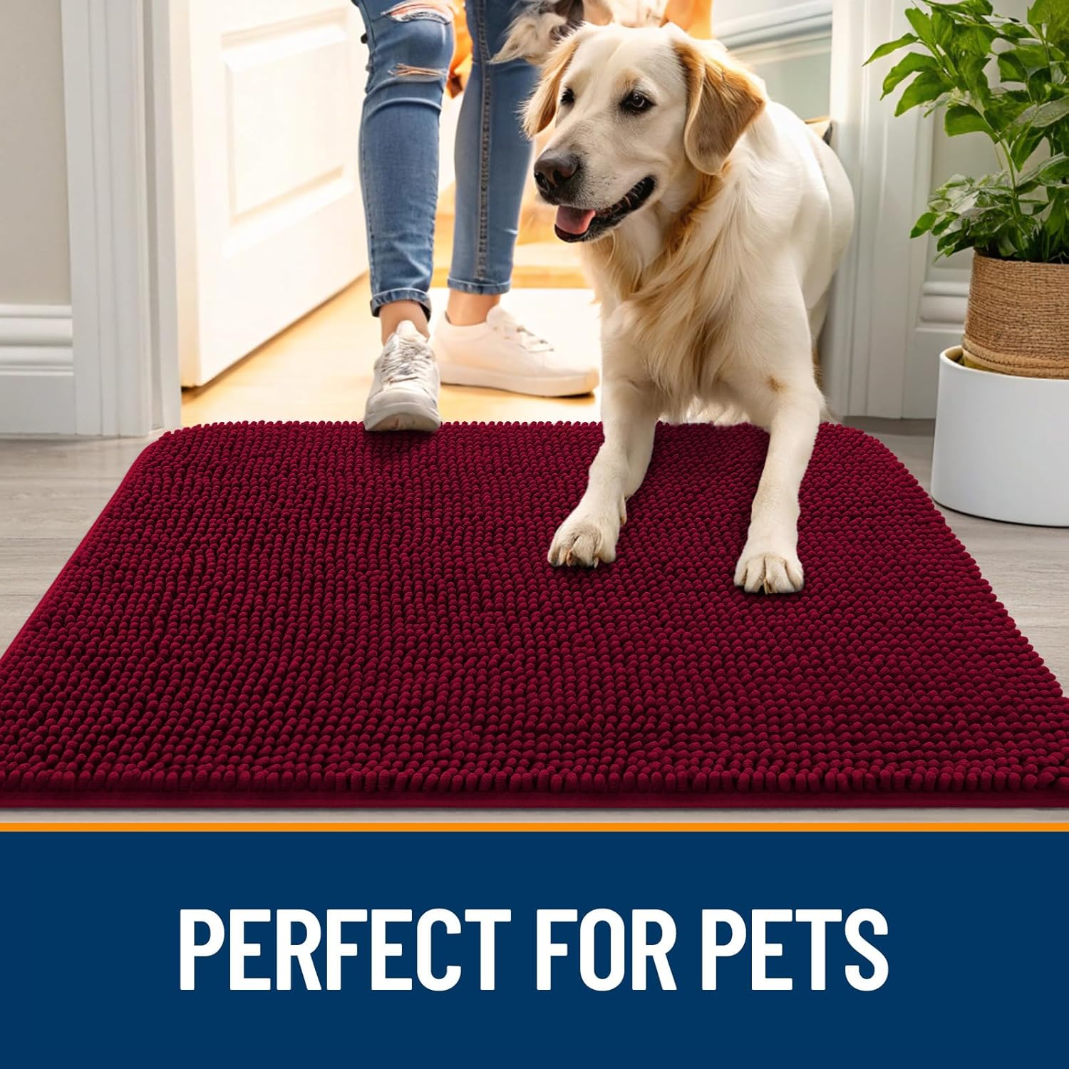 OLANLY Dog Door Mat for Muddy Paws 59x32, Absorbs Moisture and Dirt, Absorbent Non-Slip Washable Doormat, Quick Dry Chenille Mud Mat for Dogs, Entry Indoor Entryway Carpet for Inside Floor, Burgundy
