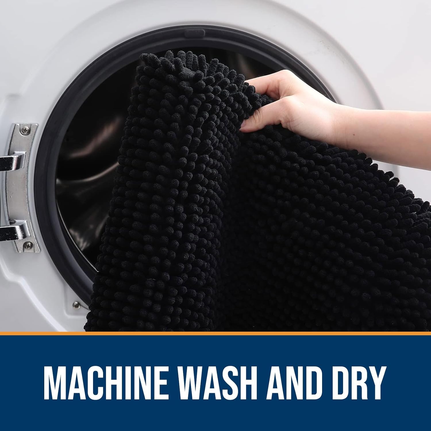 OLANLY Dog Door Mat for Muddy Paws 54x32, Absorbs Moisture and Dirt, Absorbent Non-Slip Washable Doormat, Quick Dry Chenille Mud Mat for Dogs, Entry Indoor Entryway Carpet for Inside Floor, Black