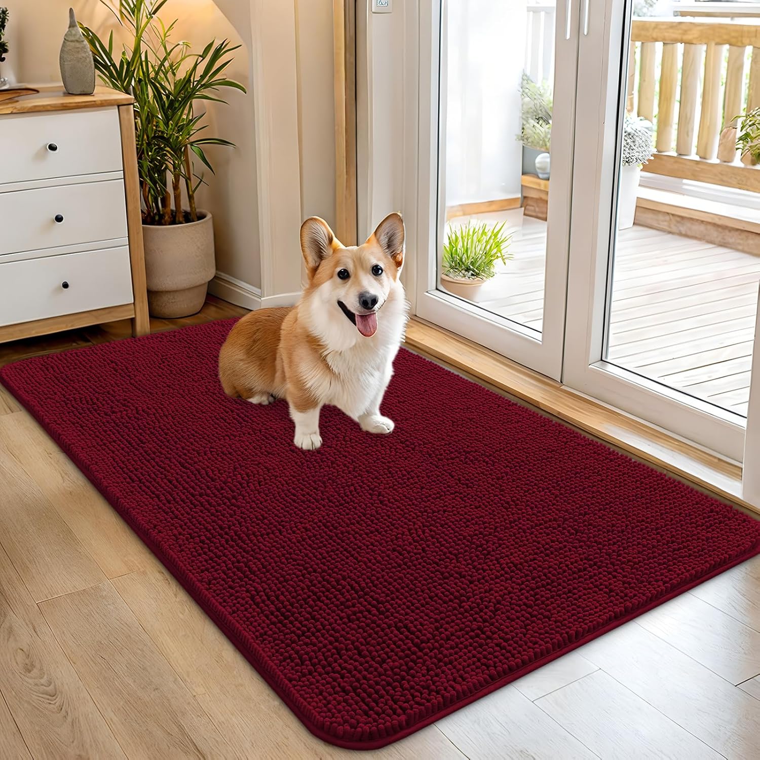 OLANLY Dog Door Mat for Muddy Paws 45x27, Absorbs Moisture and Dirt, Absorbent Non-Slip Washable Doormat, Quick Dry Chenille Mud Mat for Dogs, Entry Indoor Entryway Carpet for Inside Floor, Burgundy